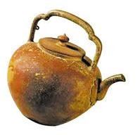 提梁壶小口球腹,下承三兽足,肩一侧有龙首流,肩部两部连以半月形提梁,略信战国铜盉式烧制g a n l v 5 c o m。