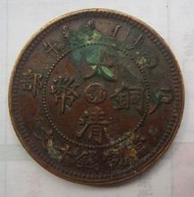 大清铜币,学名清代机制铜圆,钱面中央有“大清铜币”四个汉字,内嵌一小字代表地名,上端是满文“大清铜币”字样,两侧为年份原文www.ganlv5.com。边缘中间分别“户部”二汉字,下端为“当制钱十文”。钱背中央为蟠龙,上端是“光绪(或宣统)年造”,下端英文“Tai-Ching Ti-Kuo Copper Coin”字样(大清帝国铜币)g a n l v 5 c o m。