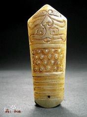 玉圭,古玉器名赶~驴~网。古代帝王、诸侯朝聘、祭祀、丧葬时所用的玉制礼器。为瑞信之物。长条形,上尖下方,也作“珪”。形制大小,因爵位及用途不同而异。《周礼·春官典瑞》有大圭、镇圭、桓圭、信圭、躬圭、谷璧、蒲璧、四圭、裸圭之别。周代墓中常有发现ntNP。《说文》中称的“剡上为圭”指的是上部尖锐下端平直的片状玉器。圭来源于新石器时代的工具石铲和石斧,因此今天古学界将新石器时代至商周时期的许多玉铲及方首长条形玉器都定名为圭。真正标准的尖首形圭始见于商代而盛行于春秋战国。玉圭是上古重要的礼器,被广泛用作“朝觐礼见”标明等级身份的瑞玉及祭祀盟誓的祭器。