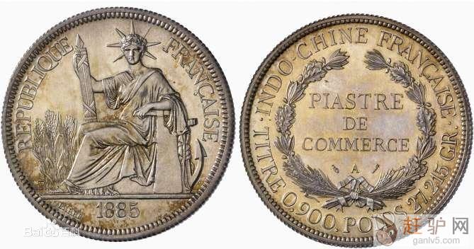 坐样币学名:法属印度支那贸易银圆,俗称坐洋,为清末民初在华流通的外国银圆之一g a n l v 5 c o m。银币正面为自由女神坐像,背面的装饰图案为麦穗,法文有“贸易银元”和“法属印度支那”等www.ganlv5.com赶驴网。
