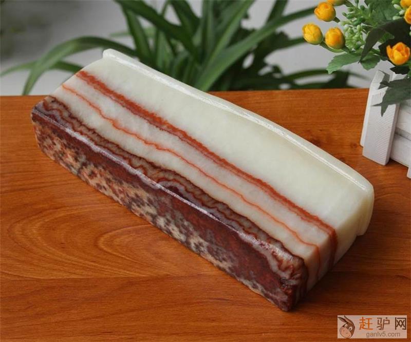 来自www.ganlv5.com人们常说奇石无价,但是什么样的石头算是奇石呢?奇石、只要长的奇怪的都可以叫奇石,但是一定要是天然形成的;都可以称之为奇石,但是喜欢的人就不一样了,造型长的形象、色彩鲜艳的、喜欢的人就多了,普通的话,送人都不一定有人要。今天我们来说说“四大奇石”,四大奇石分别是:《东坡肉形石》、《岁月》、《中华神鹰》、《小鸡出壳》。东坡肉形石:出自内蒙阿拉善左旗,在康熙年间就被供入内府了,现收藏与台北故宫,属于是四大奇石之一,规格在5.73x6.6x5.3厘米,重量为0.52Kg;看上去就如一块栩栩如生的五花肉,“肉”的肥瘦层次分明、肌理清晰、毛孔宛然,肌理也相当逼真。赶~驴~网g+a+n+l+v+5+c+o+m