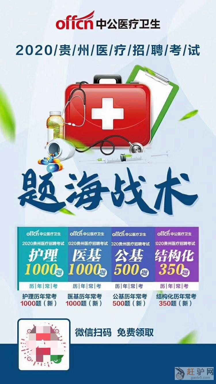2020贵州医疗招聘考试题海战术,扫码领取,公基+医基+护理+结构化!可来电咨询来自www.ganlv5.com