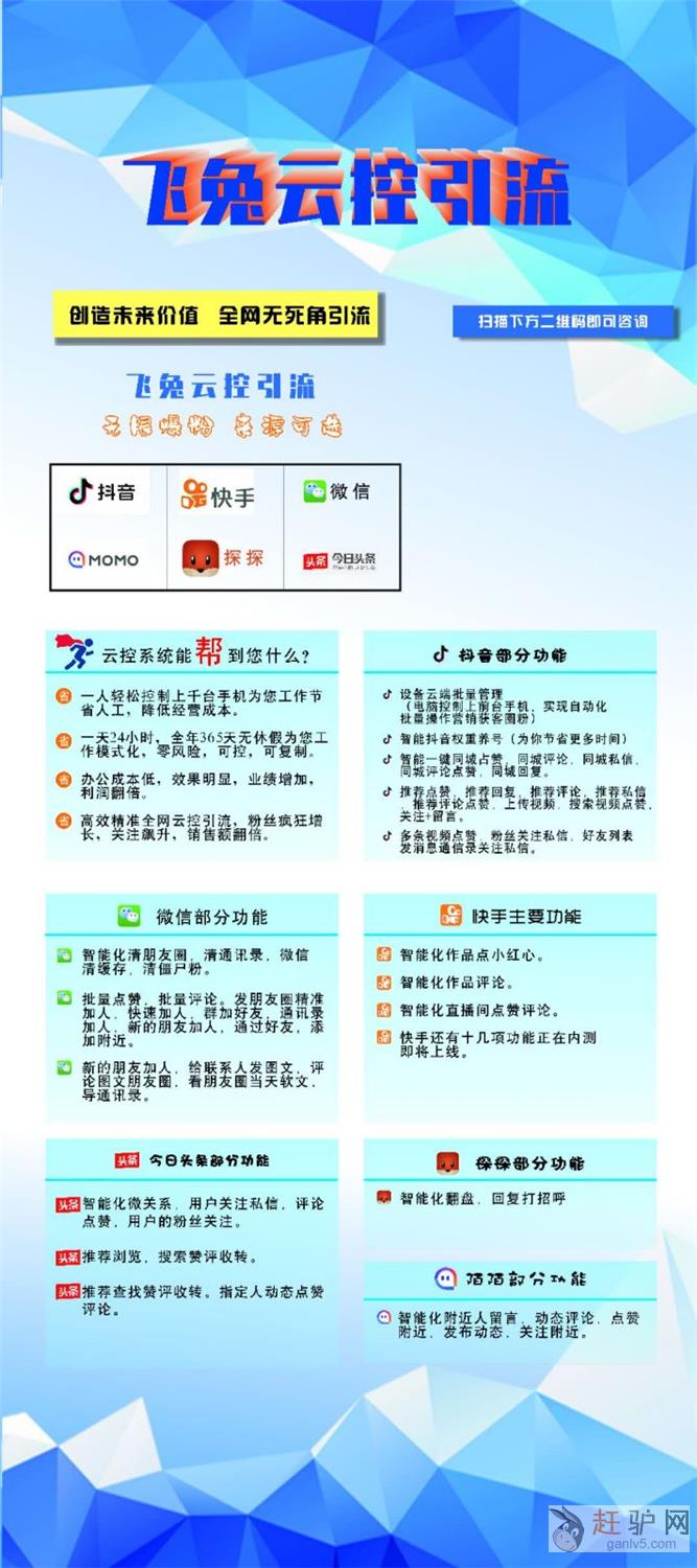g a n l v 5 c o m飞兔云控系统,一台电脑轻松控制上千台手机,抖音批量养号,批量种草,自动点赞,评论,点赞,关注,私信。